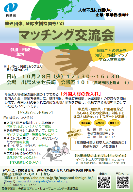 長崎県主催の、ベトナム・インドネシア対象の監理団体、登録支援機関等とのマッチング交流会に、AGDとMCSCCの会員企業のインドネシア総合研究所が参加致しました。
